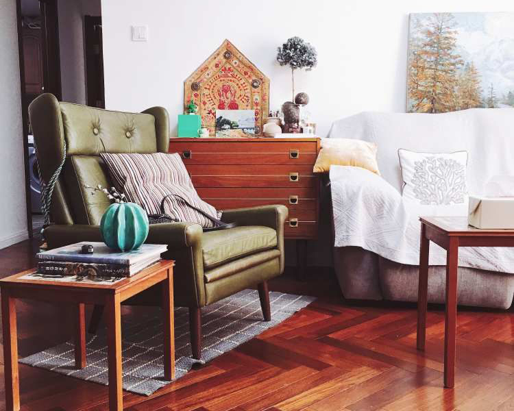 Echo is to use other decoration in the same colour range, such as door, window frames and furniture, etc., to respond to the flooring colour and maximize the overall retro feeling.